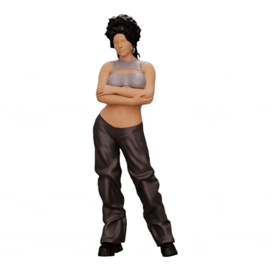 Miniatuurfiguur: Vrouw in Hip-Hop stijl met BH en mini-rugzak met krullend haar (Nr. a15)