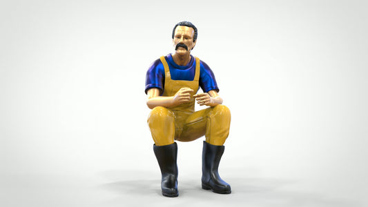 Zittende Visser met Baard - Figuur in Oliekleding en Gummistiefels (Ref. Nr. 443)