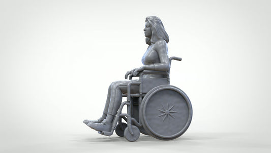 Vrouw in rolstoel - figuur in dagelijkse kleding met lang haar (Ref. Nr. 451)