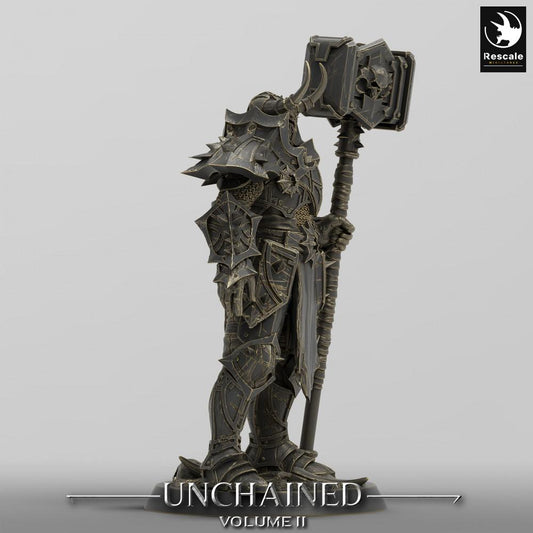 Tabletop Miniatuur: Donkere Ridder Warlord met Tweehandige Oorlogs Hamer, zwaar bewapende Commandant en Frontvechter (24_05_F10)