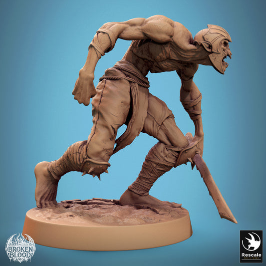 Tabletop Miniatuur: Ghul Berserker Ravager, sprintende Unhold-Slachter met Krummschwert (24_11_C21)